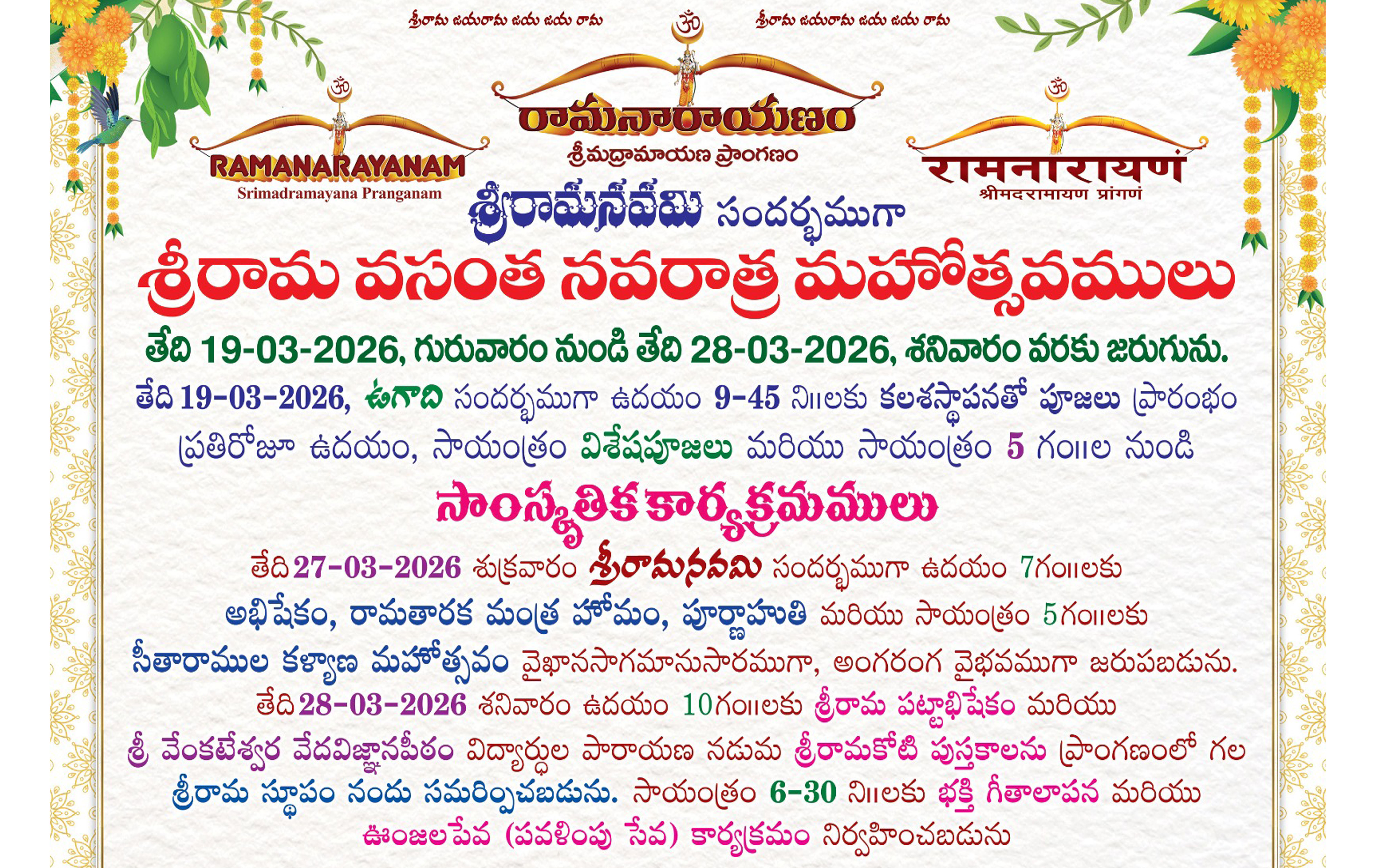 Welcome to Ramanarayanam Temple, a sacred abode of spirituality and cultural enrichment. Nestled in the heart of our vibrant community, Ramanarayanam Temple has been a symbol of devotion, service, and cultural heritage for generations. Our temple is dedicated to Lord Rama and is a haven for seekers of spiritual solace and cultural experiences.